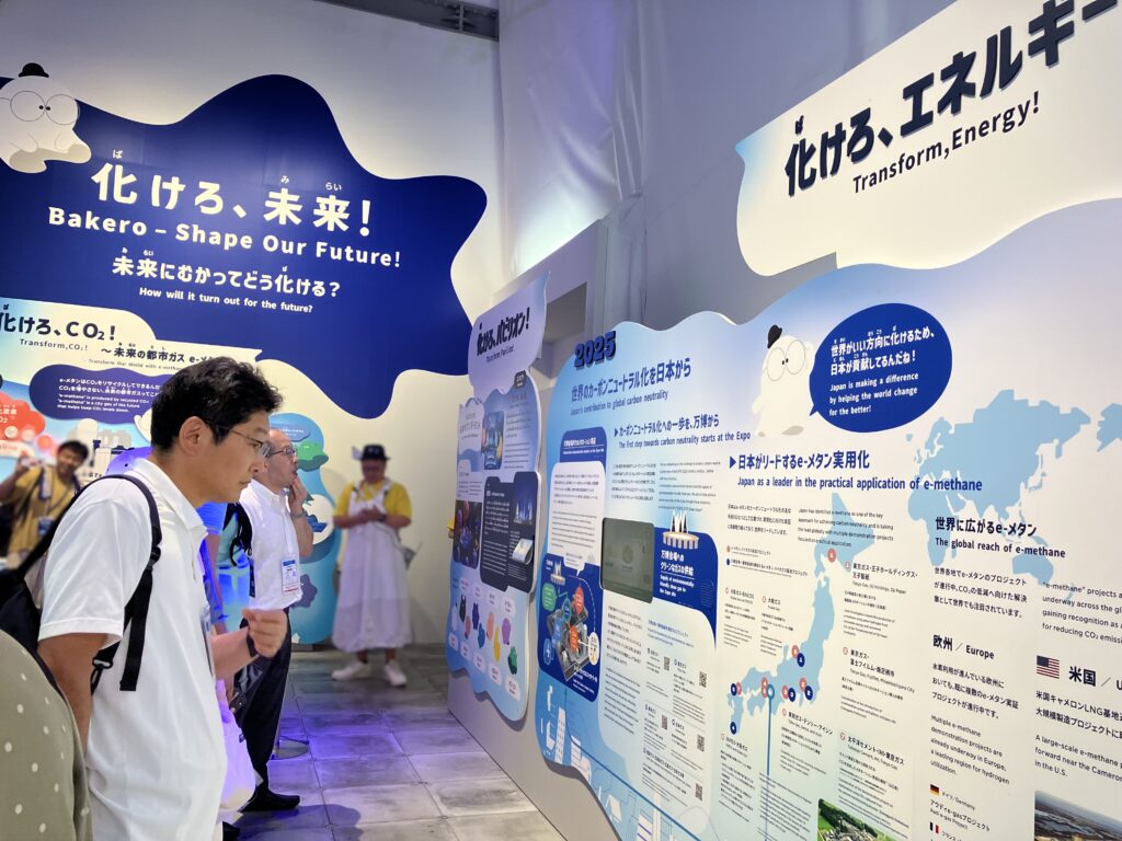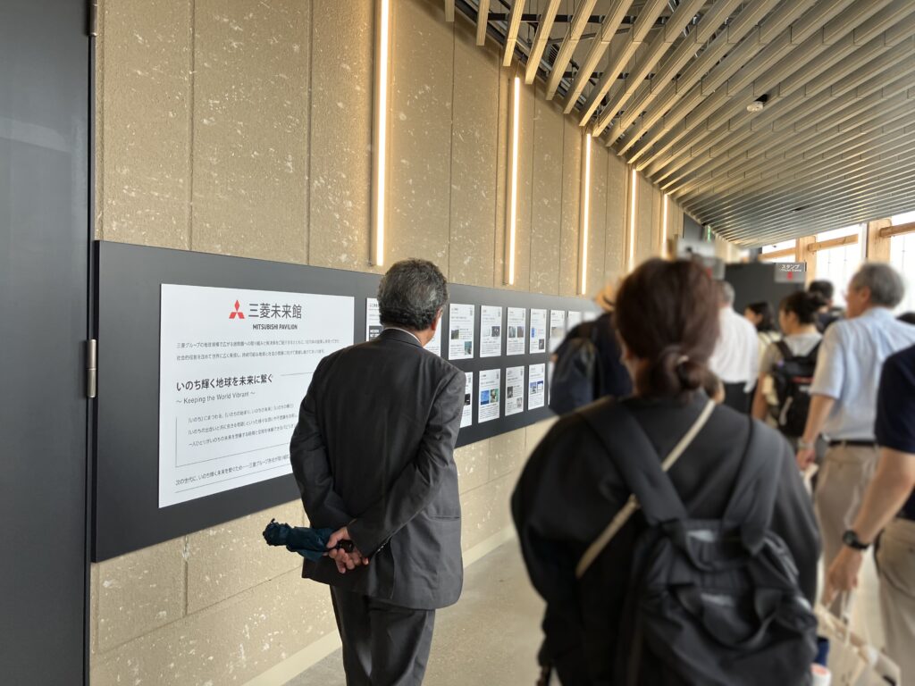 2日目の「大阪・関西万博」視察では、「ガスパビリオン」にて、VR体験と展示を通じて、カーボンニュートラル実現に向けたエネルギー技術について学びました。続いてドイツパビリオンのレストラン「Oishii! Germany」にて昼食をとった後、「三菱未来館」にて「いのち輝く地球を未来に繋ぐ」をテーマとした映像や展示を通じて、アストロバイオロジーの未来の姿に触れました。