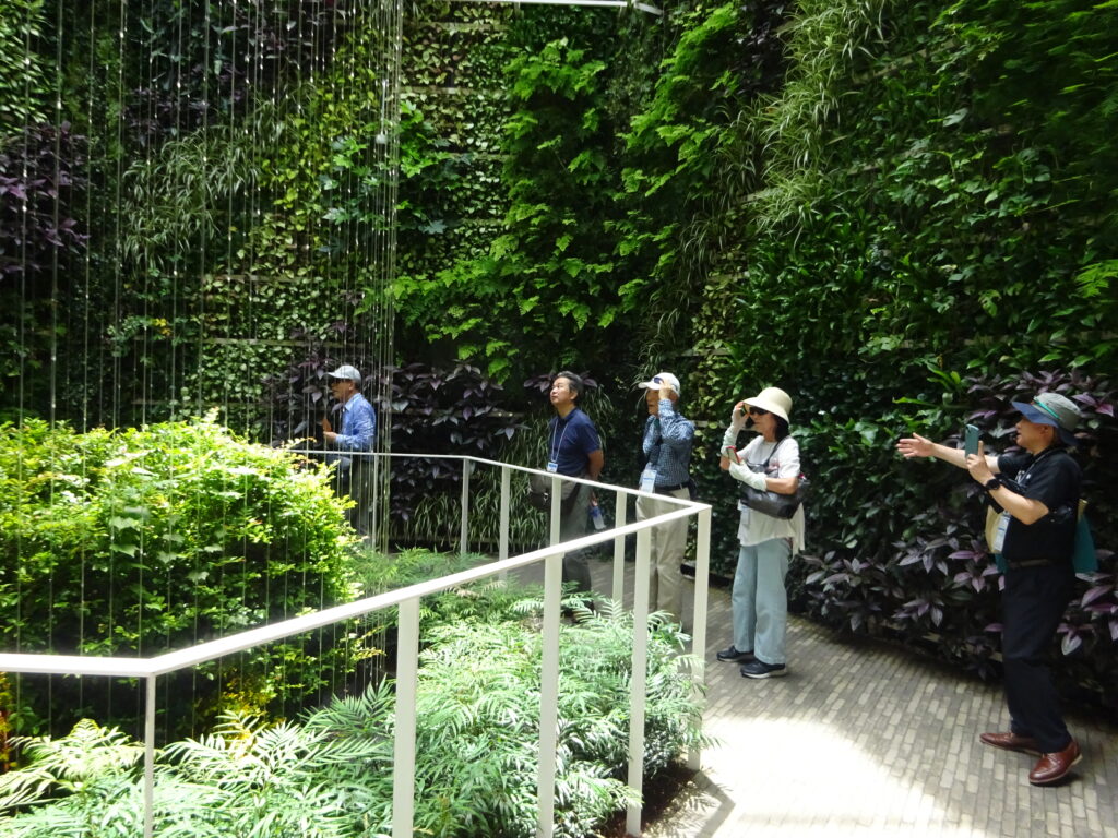 ホテルを出発後、ジャンボタクシーで再び会場へ向かった。最初に見学したのは、約17mの赤い球体がシンボルの「シンガポール館」。その後、「ベルギー王国館」を視察、ライフサイエンスやヘルスケアに関する最新技術に触れたのち、昼食にベルギー料理を味わった。