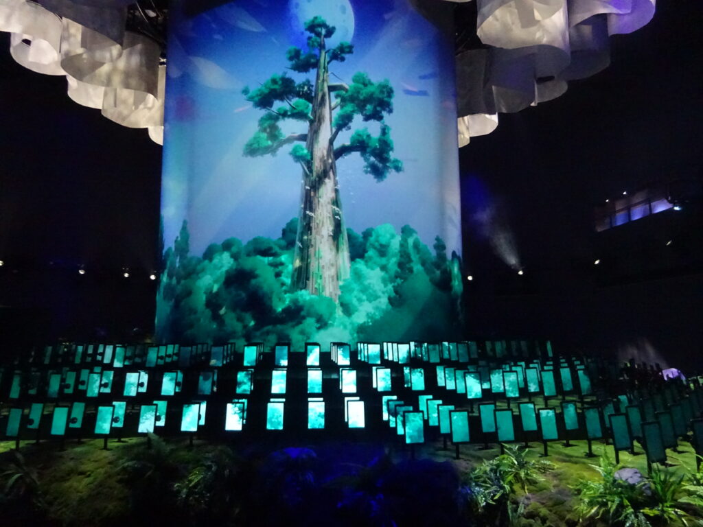 昼食後、最初に訪問した「PASONA館」では、最先端医療技術であるiPS心臓をはじめとした革新的テクノロジーを視察。続いて、360度スクリーンに世界各国の祭りや郷土芸能を投影する「いのちの遊び場 クラゲ館」を見学し、最新技術と多様な文化への理解を深めた。