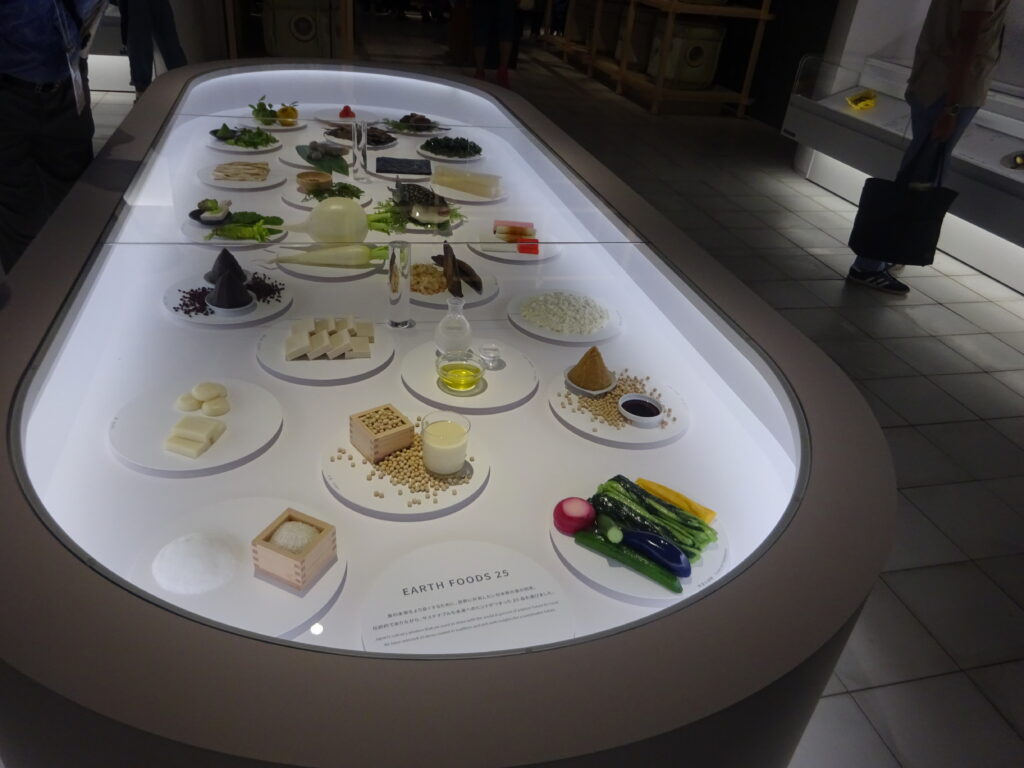 最後に訪れた「アースマート」では、全国各地から集めた茅を使用した藁葺き屋根が特徴的で、未来の売場を表現した食の展示施設などを視察した。