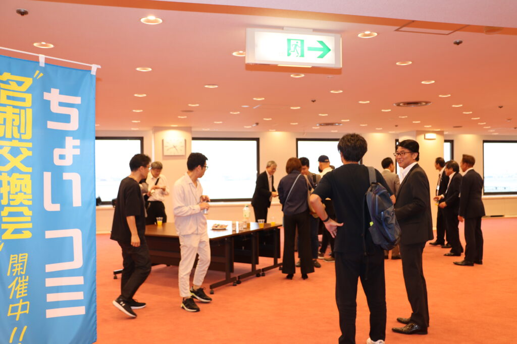 講演会終了後はレセプションスペースにて、名刺交換会「ちょいコミ」が開催されました。講演会参加者に加え講師の細尾氏にもご参加いただき、和やかな雰囲気の中で交流が図られました。