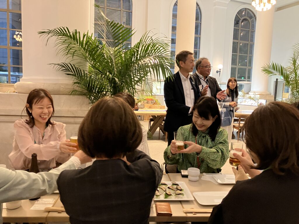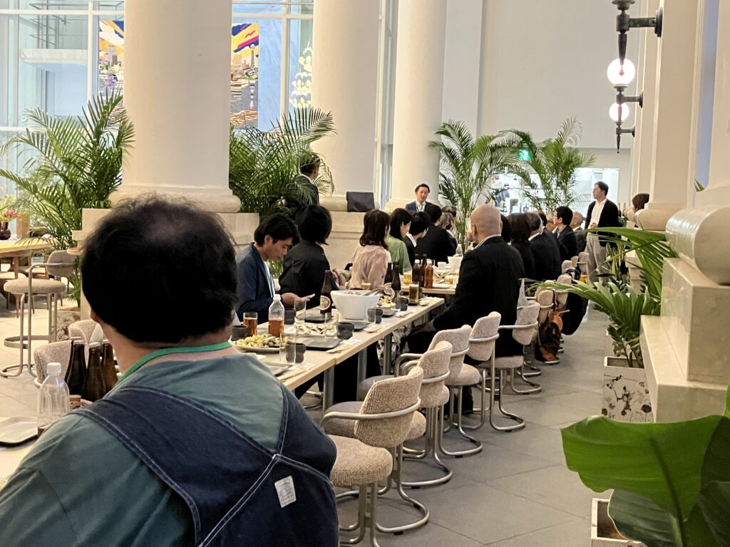 小山副部会長の乾杯の一声により交流会が開始。視察会の熱気はそのままに、参加者同士の和やかな交流が図られました。参加者からは、「地元で働いているが行く機会がなかったので、訪問できてよかった」「旧第一銀行横浜支店の中がどうなっているか気になっていたので、見学できてよかった」「オープンしたばかりの施設を見られて有意義だった」との声がありました。