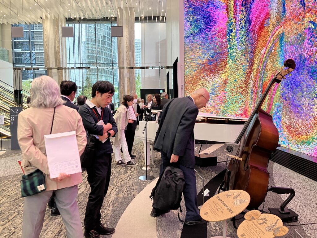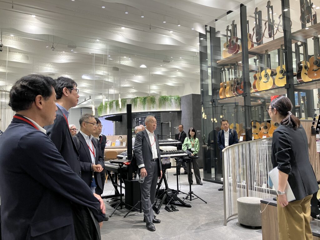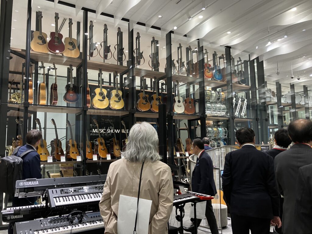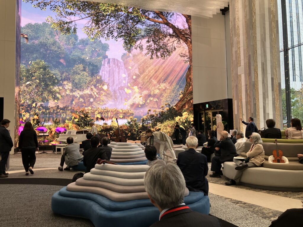 ウエストタワー1・2階のヤマハ体験型ブランドショップ「ヤマハミュージック 横浜みなとみらい」は、定休日にもかかわらずご案内いただきました。楽器経験を問わず誰もが音楽に触れる楽しさを提供することを目的とし、1階の吹き抜けでは音楽と映像が融合したイマーシブな体験をすることができました。ピアノショールームでは、特別にベーゼンドルファーの音色を聞かせていただきました