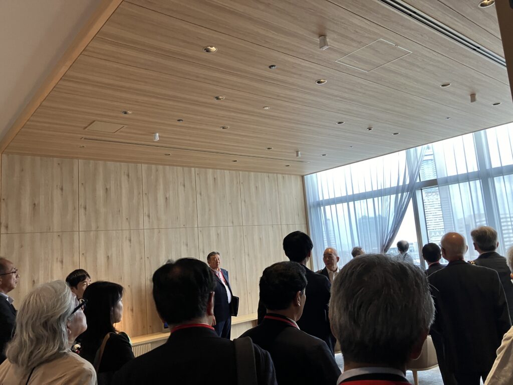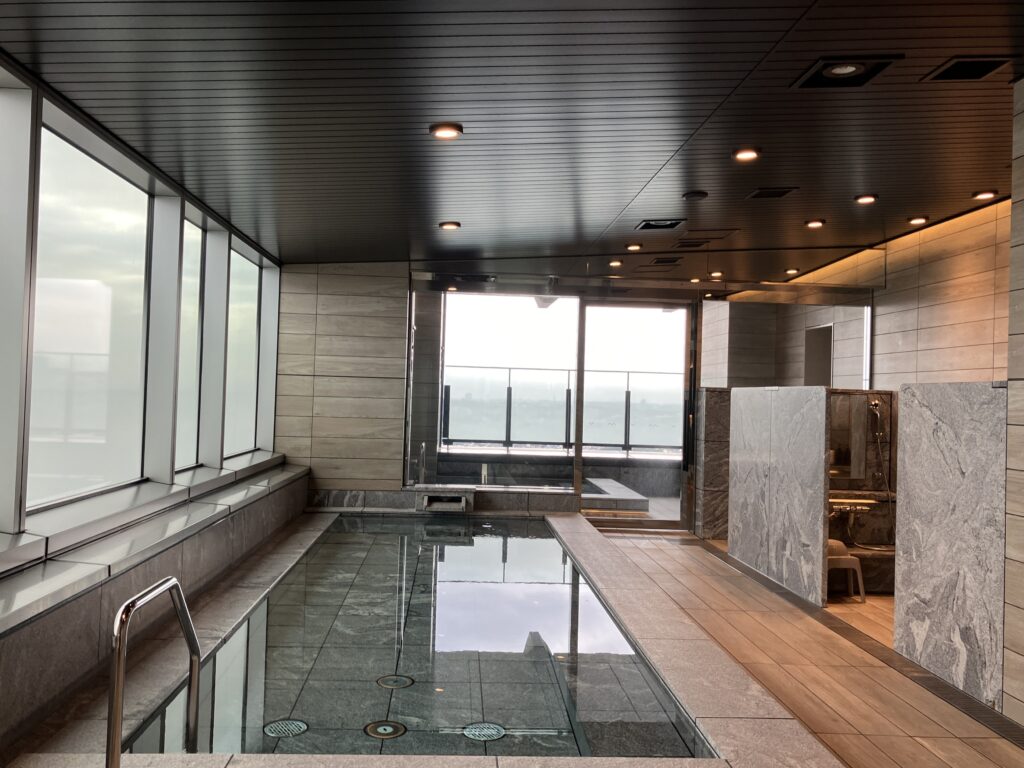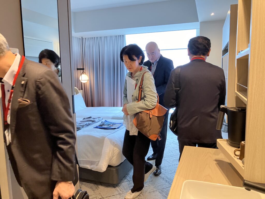 ウエストタワー高層部にある「京急 EX ホテル みなとみらい横浜」を見学しました。全150室が27階以上の高層階に位置し、すべての客室からみなとみらいの開放的な景色を望むことができます。当日はあいにくの曇り空でしたが、天気の良い日には富士山も見ることができるそうです。ブランド初となる大浴場・露天風呂も設けられており、くつろぎ空間を見学させていただきました。