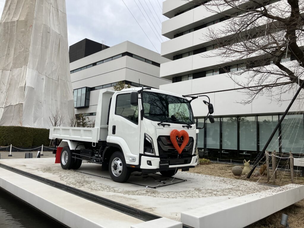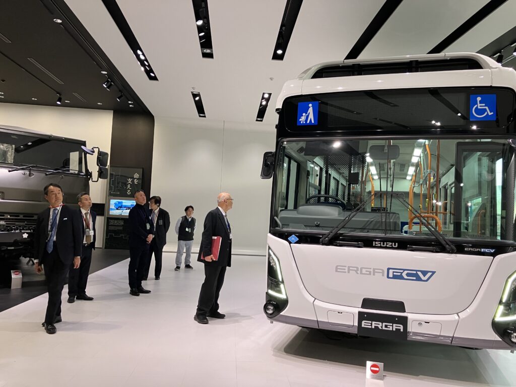 • 「運ぶ」を支えるいすゞ: いすゞ自動車の創業(1916年)に関わる歴史的な背景や、国内に現存する国産最古のトラック「ウーズレーCP型」について説明を受けました。また、現在開発中の燃料電池バス「エルガFCV」や、大型トラック「ギガ」、普通免許で運転可能な小型トラック「エルフミオ」、など、現在街中で活躍する最新車両が展示されており、バリアフリーを追求したフルフラットフロアの構造や、環境に配慮した設計について解説がありました。