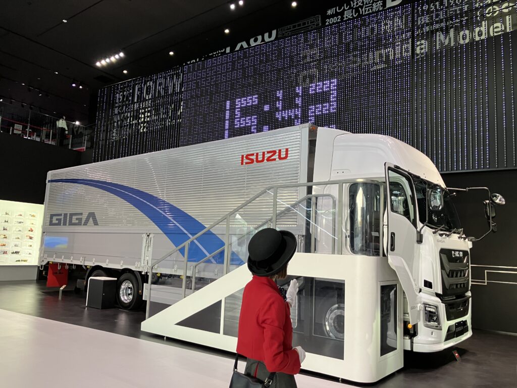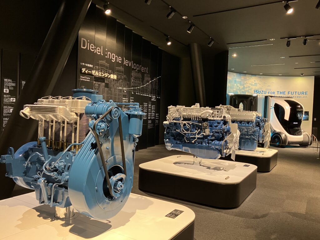 続いて、ツアーガイドによる案内のもと、「『運ぶ』を支えるいすゞ」「いすゞのくるまづくり」「いすゞの歴史」のエリアを見学しました。