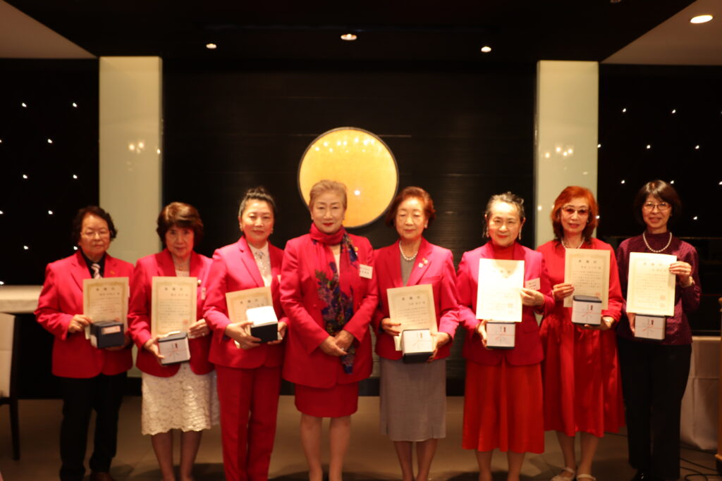 続いて、女性会活動に長きにわたり貢献された会員の表彰式が執り行われ、表彰状と記念品が授与されました。