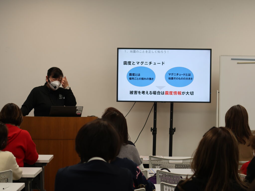最後に視察の締めくくりとして、地震に関する防災講話を受講し、地震への理解と発災時に役に立つ行動基準を講義形式で学びました。参加者からは質問も多く、体験と知識が結びつく非常に実り多いプログラムとなりました。