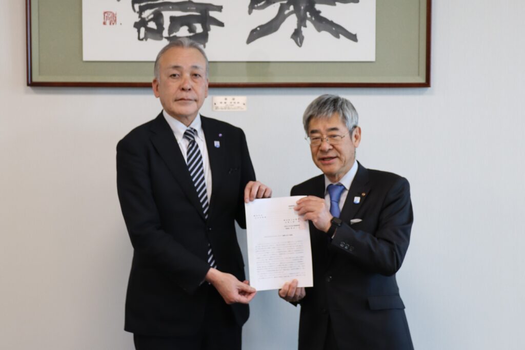横浜商工会議所は、標記要望を取りまとめ、4月9日に横浜市平原副市長及び、公益社団法人2027年国際園芸博覧会協会河村事務総長へ、原田副会頭(GREEN×EXPO協力推進委員会委員長)から提出いたしました。