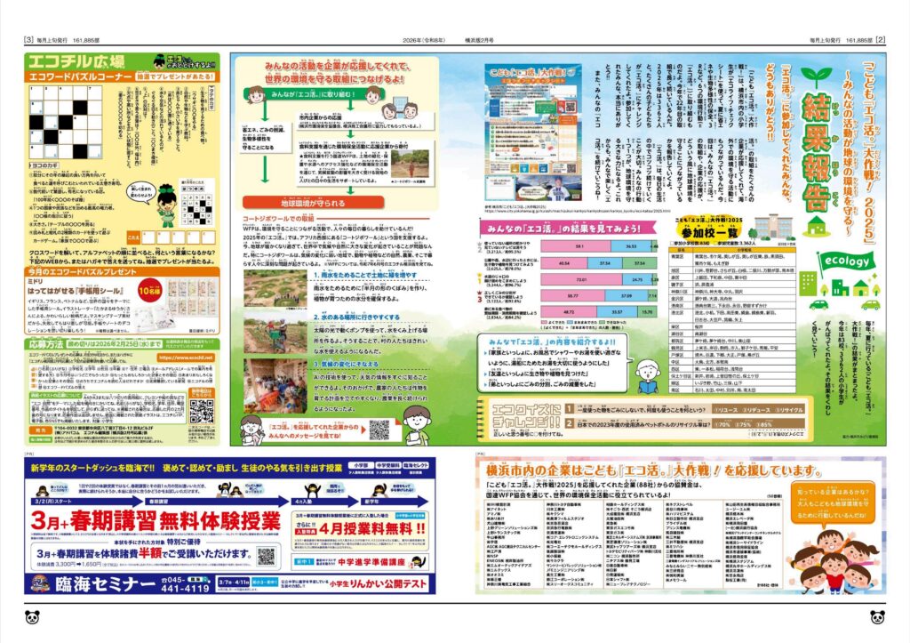 横浜市立小学校の児童約16万人とそのご家庭に対し、環境情報紙「エコチル横浜版」にて協賛企業をご紹介しました。