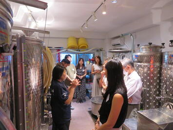 第2弾は7/27・8/2の2日間にわたり、「横浜醸造ワイン・クラフトビールのビジネス活用」をテーマに開催しました。1日目は横浜産ブドウを使用した「純横浜産ワイン」造りに取組む「横濱ワイナリー」、2日目はブルワリー併設レストラン「REVO BREWING」にて、醸造所見学や生産者による講演、試飲会を通じ、和気あいあいとした雰囲気の中交流を深めました。