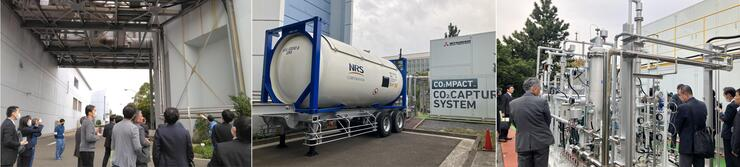 装置を視察。ここで回収したCO2が、「東京ガス横浜テクノステーション」に運搬され、メタネーションの原料として利用されます。