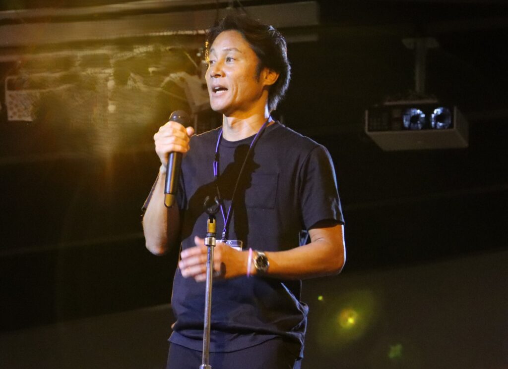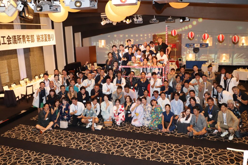 夏祭り会場さながらに装飾された会場にて、新入会員、ゲスト参加者の紹介の他、青年部・ゲスト参加者、マスター会、県内各単会青年部の計6チームによるチーム対抗ゲーム大会が開催されました。ゲーム大会では輪投げ、射的、ダーツが行われ、チームメンバーと交流を深めながら合計得点で順位を競い合い、最後に、全員での記念撮影を行い、盛況のうちに閉会となりました。